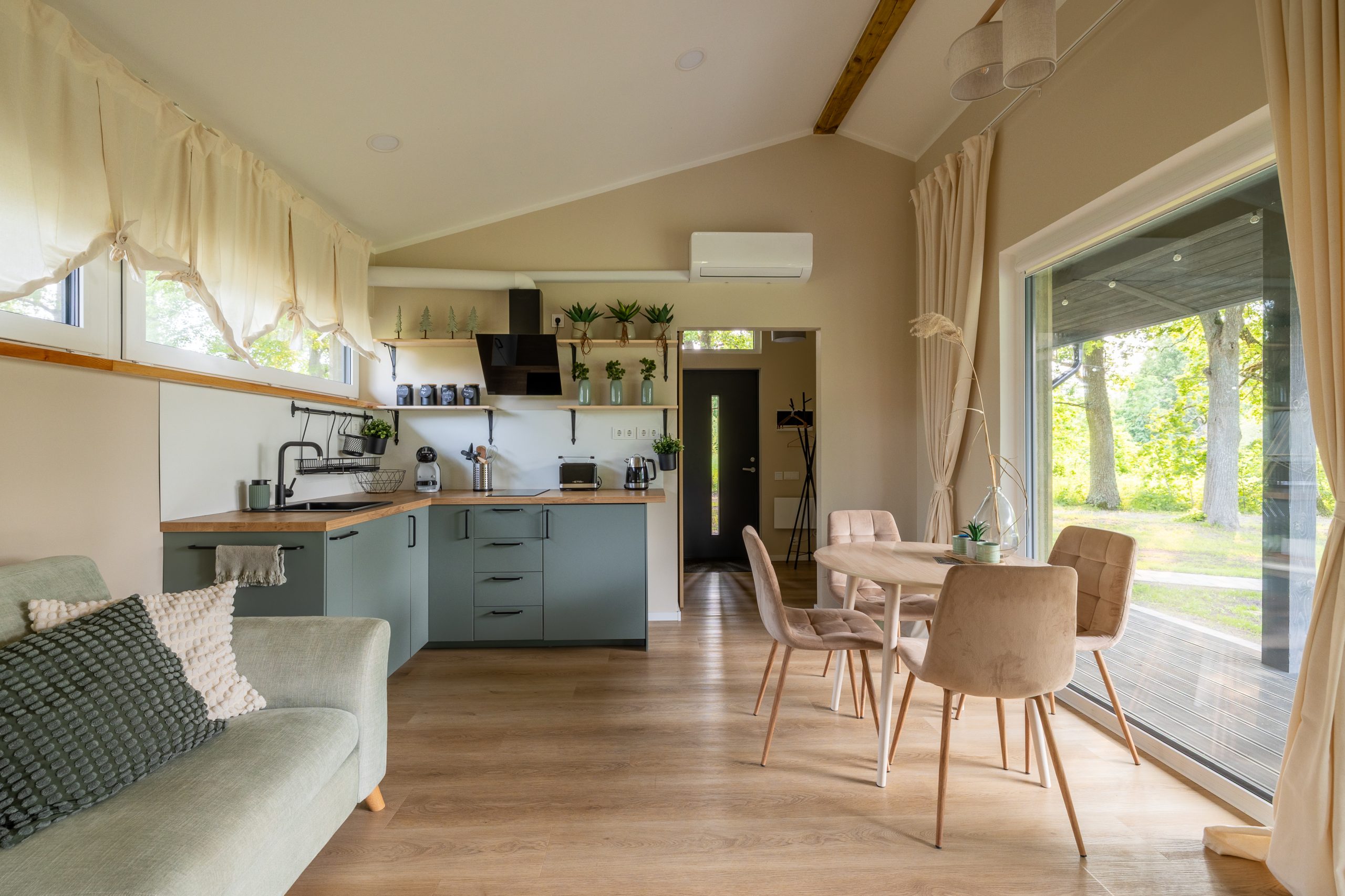 Rūpīgi pārdomātas un visu gadu apdzīvojamas brīvdienu mājas, kas sniedz patiesu komfortu atpūtā pie dabas. Mājas platība ir 40m2, ar tik pat plašu terasi un apburošu skatu uz Babītes ezeru, šī ir īsta miera osta. Katrs sīkums ir pārdomāts ar lielu rūpību, jo mēs vēlamies, lai jūsu laiks šeit būtu ne tikai patīkams, bet arī neaizmirstams! Kopā piedāvājam guļvietas 14 personām trīs atsevišķās ēkās.